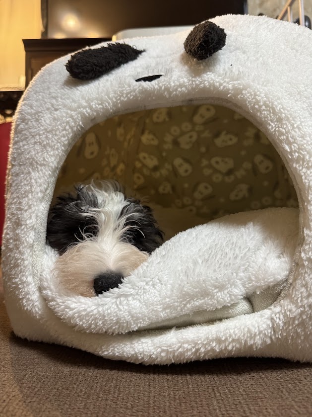 まあね、寝床(一番狭くて小さい部屋を別荘と呼んでる)の別荘もパンダ風でしょ? (本当はスヌーピーっていうんだけどさ)